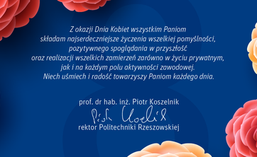 Najserdeczniejsze życzenia z okazji Dnia Kobiet składa rektor Politechniki Rzeszowskiej prof. dr hab. inż. Piotr Koszelnik.