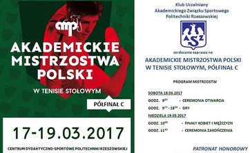Od 17 do 19 marca br. w obiektach Centrum Dydaktyczno-Sportowego PRz rozgrywano jeden z czterech półfinałów Akademickich Mistrzostw Polski w Tenisie Stołowym.