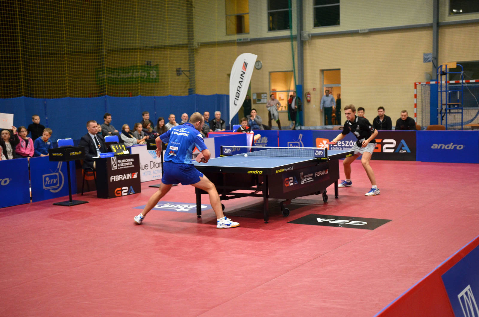 "Najpierw znakomicie usposobiony Białorusin Platonov przegrywał już 1:2 i jego oponent Lakeev miał w czwartym secie meczbola, ale wybronił go i decydujący set wygrał na przewagi. 1:0 dla gości. Wyrównał aktualny mistrz Polski – popularny »Lewy«, który ograł w pięciu setach 50. rakietkę świata Wanga Zeng Yi. Wyrównanie na 1:1. W pojedynku »trzecich rakietek« górą był znakomicie spisujący się w tym sezonie »Gołąb« – Mateusz Gołębiowski. 2:1 dla gospodarzy. W meczu liderów »Wasyl« (Lekeev), po przegranym pierwszym secie, w drugim ograł »Wandżiego« do 2, aby trzeciego przegrać do 10. Wyrównanie na 2:2 w meczu. Decydujące starcie doskonale znających się »Lewego« z »Platim«. Pierwszy set dla »Lewego«, który w drugim ma dwa meczbole, jednak przegrywa do 15. Trzeci set 11:9 dla »Platiego« i rywale… padają sobie w objęcia. 3,5 godziny walki, niesamowita dramaturgia i brawa dla zwycięzców, chwała pokonanym!” – zrelacjonował piątkową rozgrywkę.