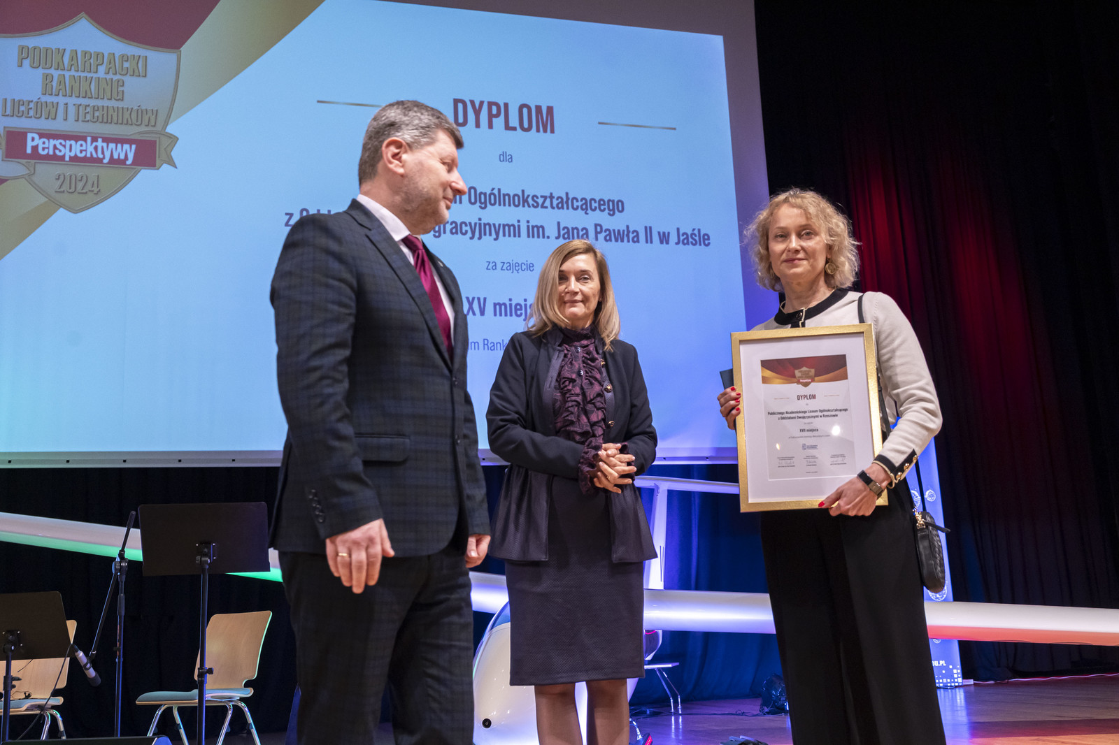 Na Politechnice Rzeszowskiej odbyła się uroczysta gala Podkarpackiego Rankingu Liceów i Techników Perspektywy 2024. Dyplomy i listy gratulacyjne przedstawicielom najlepszych szkół wręczyli rektor naszej uczelni prof. dr hab. inż. Piotr Koszelnik i podkarpacki kurator oświaty Dorota Nowak-Maluchnik.
