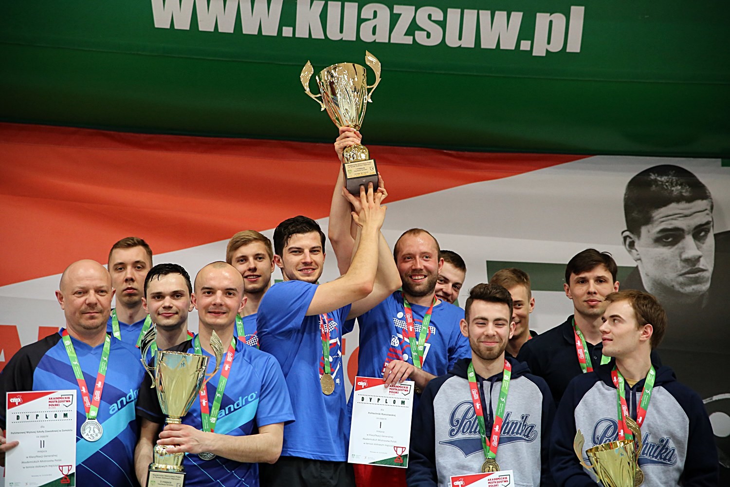 Tenisiści stołowi Politechniki Rzeszowskiej powrócili na najwyższe podium Akademickich Mistrzostw Polski. W rozgrywanym w Warszawie finale (14-15 kwietnia) z udziałem 16 najlepszych uczelni, wyłonionych w półfinałach strefowych, pokonali wszystkich najgroźniejszych rywali i zdobyli podwójne złoto w klasyfikacji generalnej i klasyfikacji uczelni technicznych.