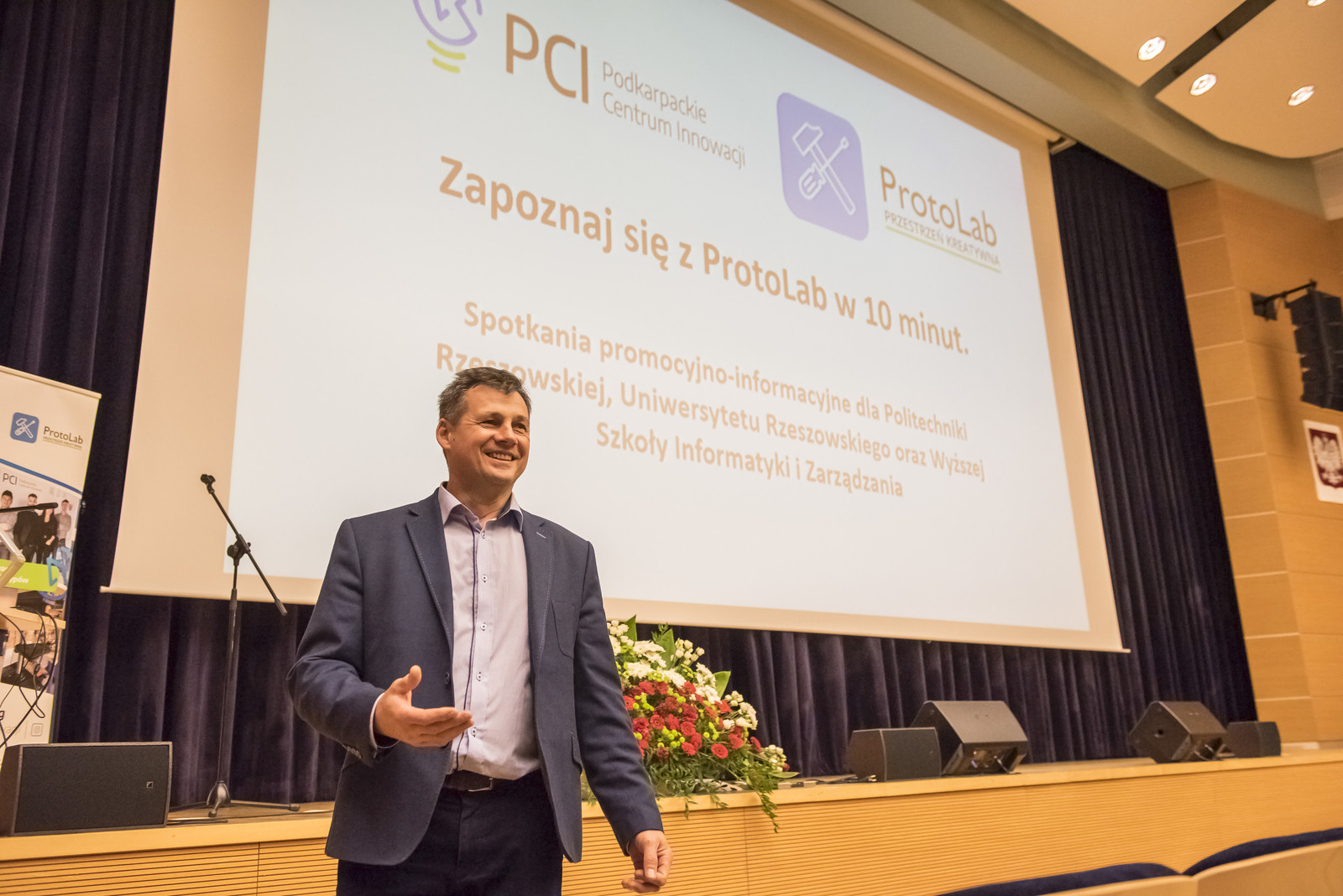 Spotkanie otworzył prof. Mariusz Oleksy, Prorektor ds. rozwoju i kontaktów z gospodarką. Prof. Oleksy zapewniał, że w ofercie PCI są ciekawe propozycje dla studentów i środki na ich realizacje. Projekt dedykowany jest studentom z Podkarpacia. Jednocześnie wyraził przekonanie, że udział Politechniki Rzeszowskiej będzie przykładem i zachętą dla innych do czynnego udziału w projekcie.